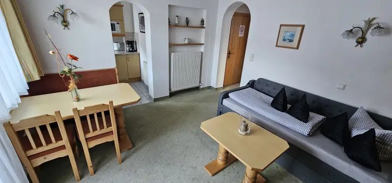 Wohnraum mit bequemer Couch (ausziehbar) 180x200, SAT-TV, Radio, WLAN, Essplatz, Balkon