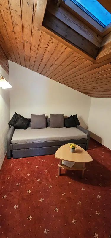 Wohnraum mit bequemer Couch (ausziehbar) 180x200, SAT-TV, Radio