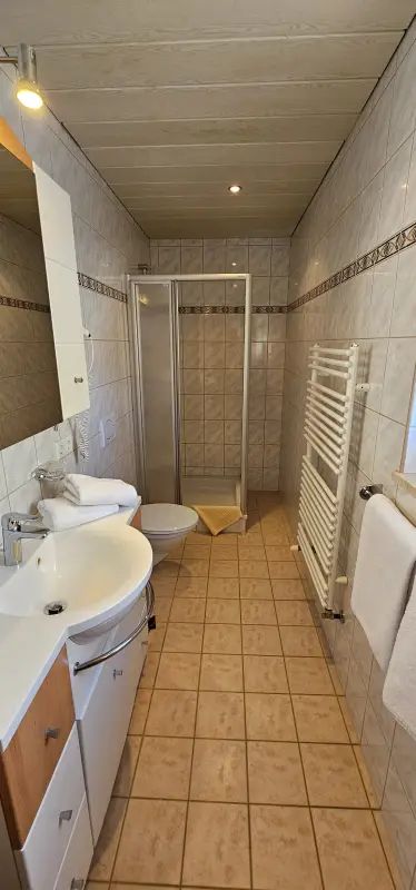 Dusche/WC, Handtuchtrockner, Fön, Außenfenster