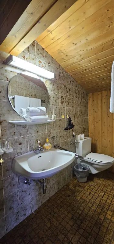 Kein eigenes Badezimmer: Die Hütte verfügt über kein eigenes Bad. Unsere Gäste nutzen das gemeinschaftliche WC im Haupthaus, das Euch selbstverständlich jederzeit zur Verfügung steht.